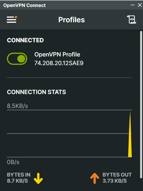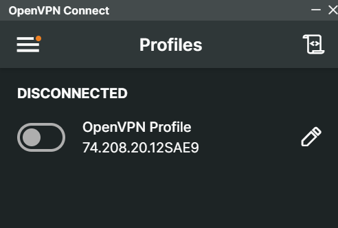 Una ves abierto la aplicación se mostrara una ventana como se muestra a continuación, o bien si no se habre de manera automática, se tendrá que dar sobre icono de la VPN (imagen 1) doble click para poder abrir la ventana de la aplicación de OpenVPN el cual desplegada una ventana como se muestra en la (imagen 4)