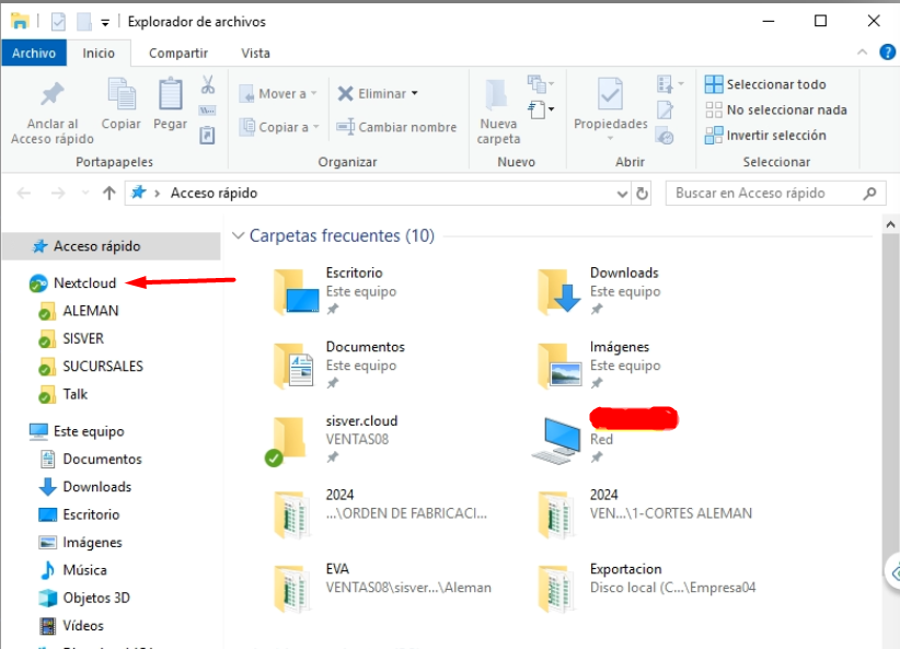 Para acceder a la nube en el escritorio, se puede entrar desde el explorador de archivos de Windows, el cual tendrá el nombre de «Nextcloud» o «sisver.cloud«.